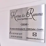 Deluxe Apartman Korina & Ramona Zadar hotel offers a terrace, located a 25-minute walk from the Church of St. Chrysogonus. This guest house entices guests with street parking, available on site.
